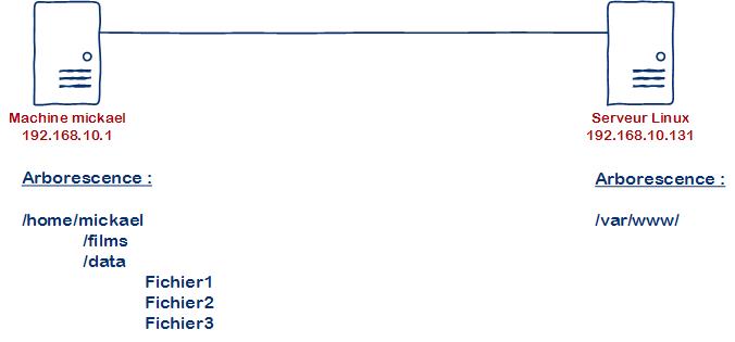 On dispose donc de deux machines sous Linux, avec chacune leur arborescence.